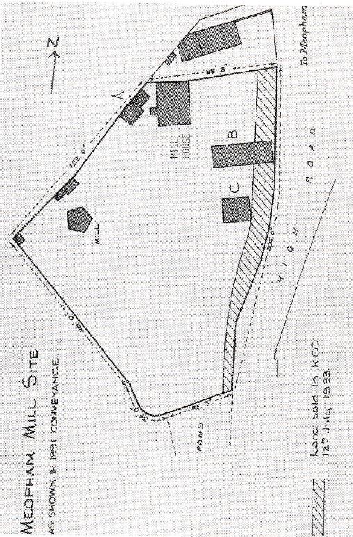 The Meopham Windmill was built in 1819 by the three Killick brothers reputedly from old ships timbers purchased from Chatham Dockyard. It was built to a 'Smock' design similar to the brothers' other mill at Strood; the name derives from the similarity to the garment worn by agricultural workers in earlier times. The basic principle of a Smock Mill is that the body of the mill in which the machinery is housed is static and only the 'cap' and sails turn to face the wind. The mill remained in the Killick family for nearly 90 years when it was sold to John Norton in 1889 and operated under that name until it was closed down in 1965. The mill was driven by the sails until 1927 when the Norton family purchased a 15 h.p. engine from a mill at Boughton. Power from the oil engine was taken into the mill by a drive belt to the first floor. The cap (and therefore sails) of the mill is turned toward the wind by a series of gearwheels and a wormgear driven by the the 'fantail' situated at the rear of the cap. The sails themselves followed a design by William Cobbett by which the effective area of the sail is automatically adjusted for any wind strength. In order to preserve this important landmark the County Council decided to proceed with restoration and the Mill now serves as the headquarters of the parish council. |